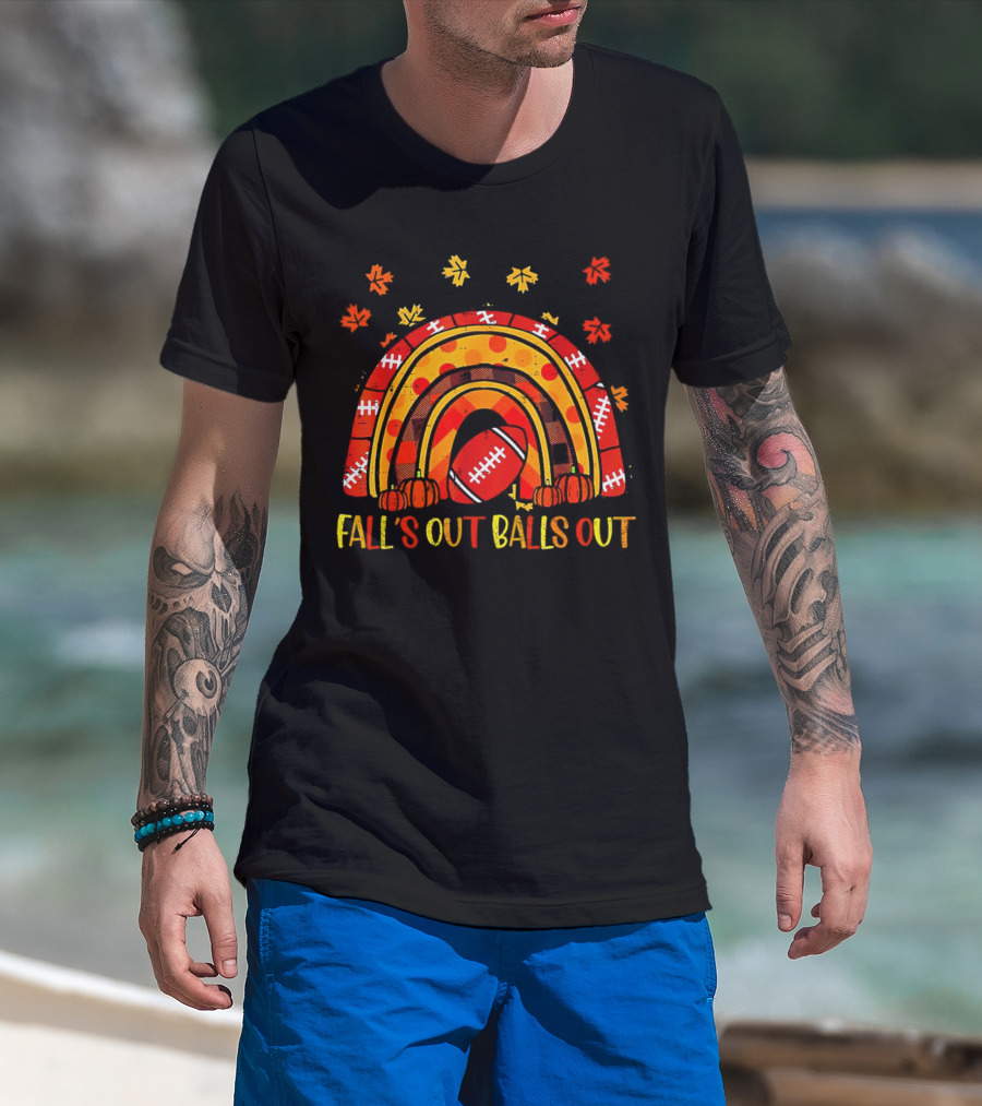 Fall's Out Balls Out Rainbow American Football Autumn Leaves T-Shirt