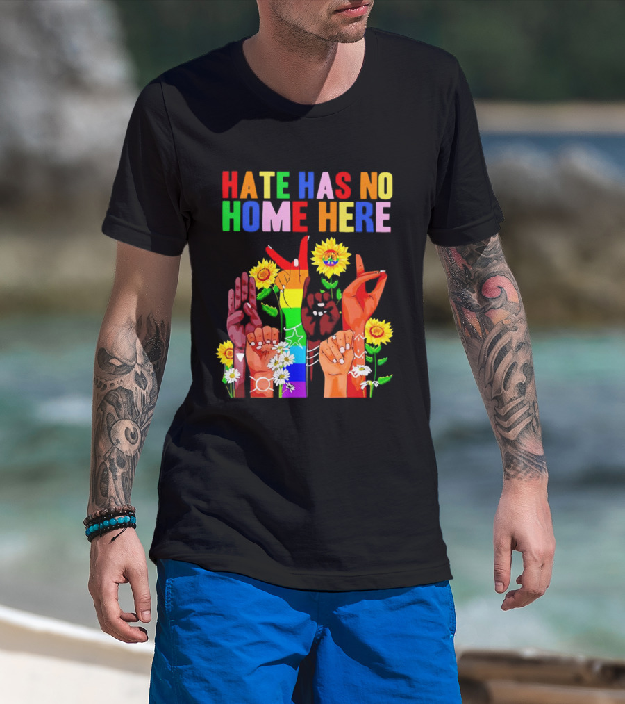 Hate Has No Home Here Peace Rainbow Hands Sunflowers T-Shirt