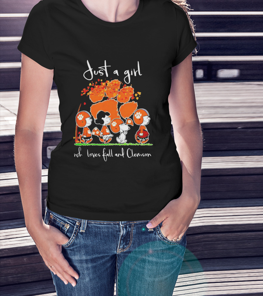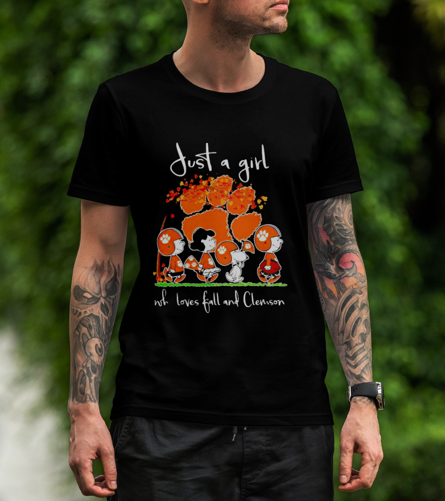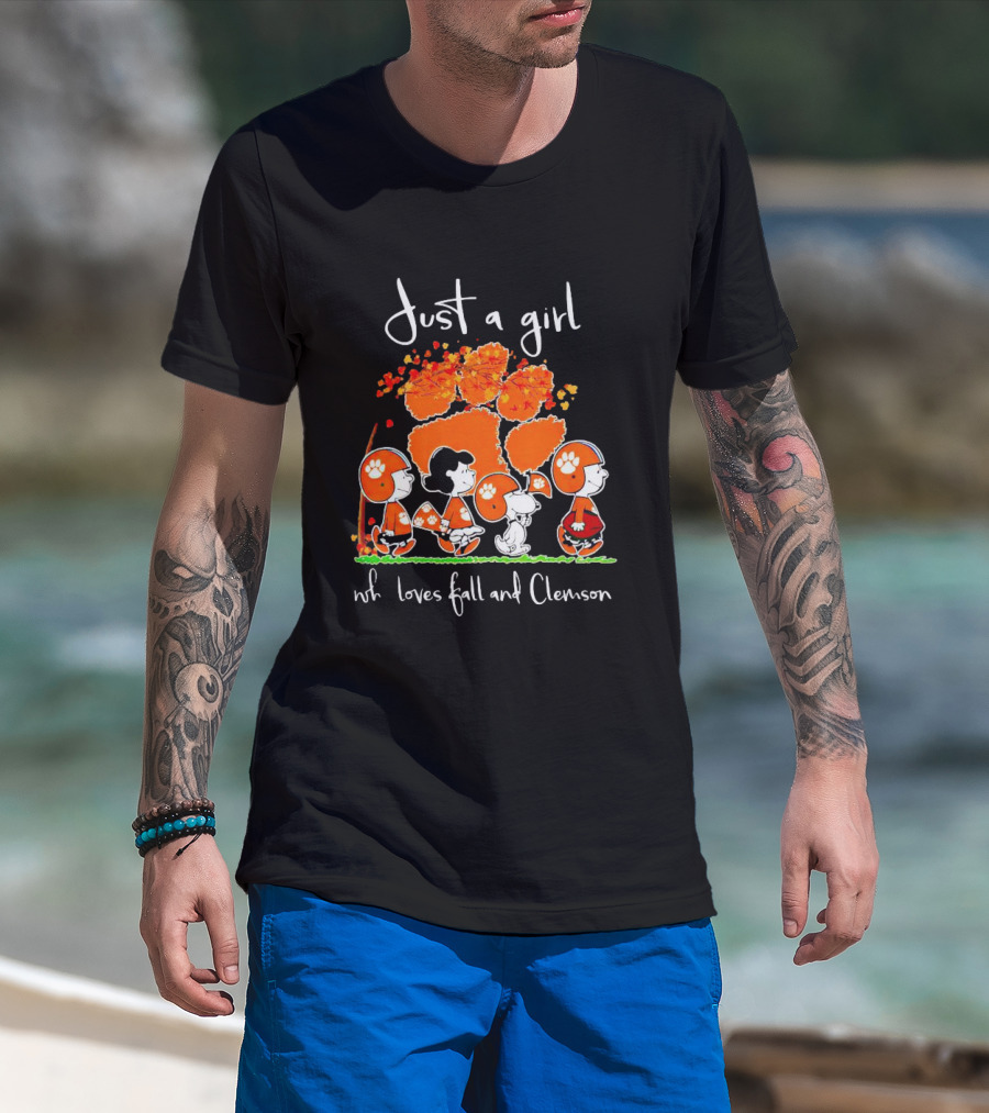 Just A Girl Who Loves Fall And Clemson Peanuts Characters T-Shirt
