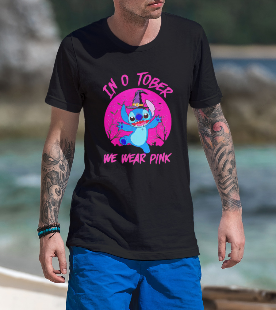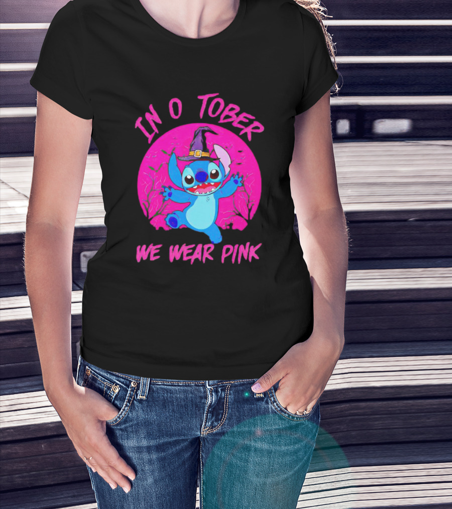 Stitch In October We Wear Pink Halloween Magic T-Shirt