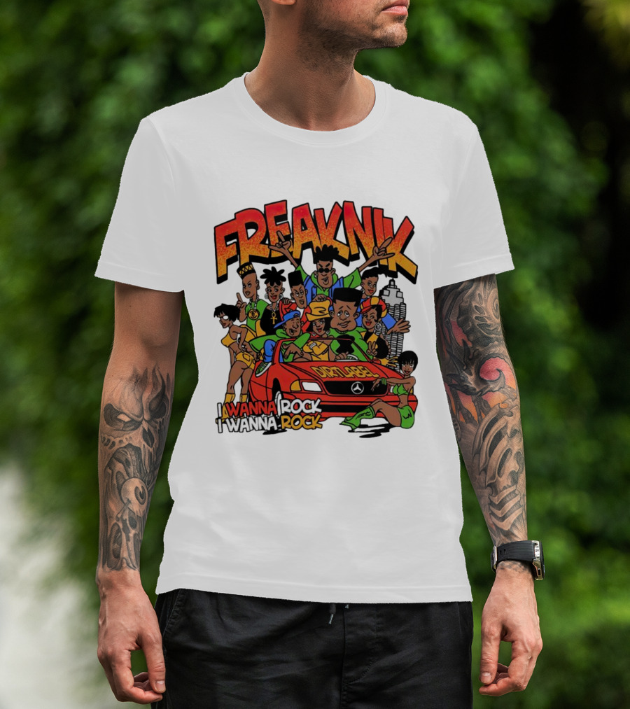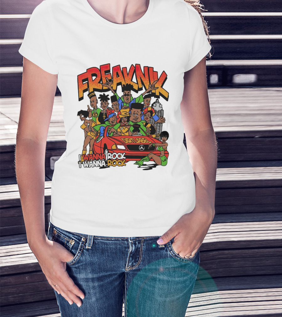 FreakNik I Wanna Rock Cartoon Characters In Red Car T-Shirt
