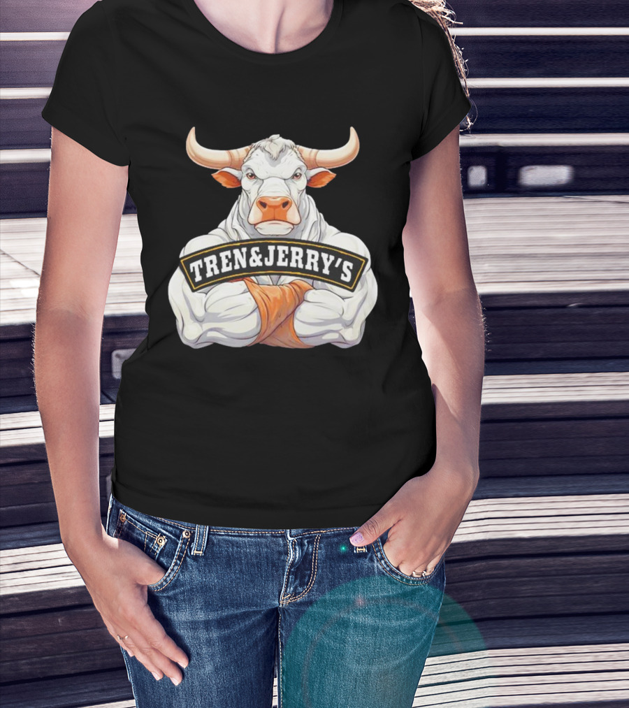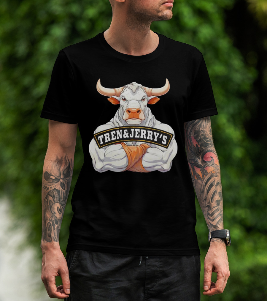 The TREN and JERRY'S Bull T-shirt is designed for everyday wear and a consistent fit. Fabric is pre-shrunk ring-spun cotton with durable stitching. See the size chart below for exact measurements.