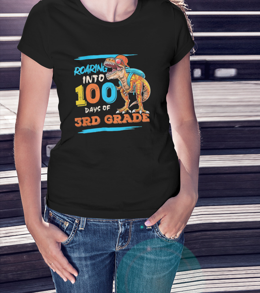 Roaring Into 100 Days Of 3rd Grade Dabbing Dinosaur T-Shirt