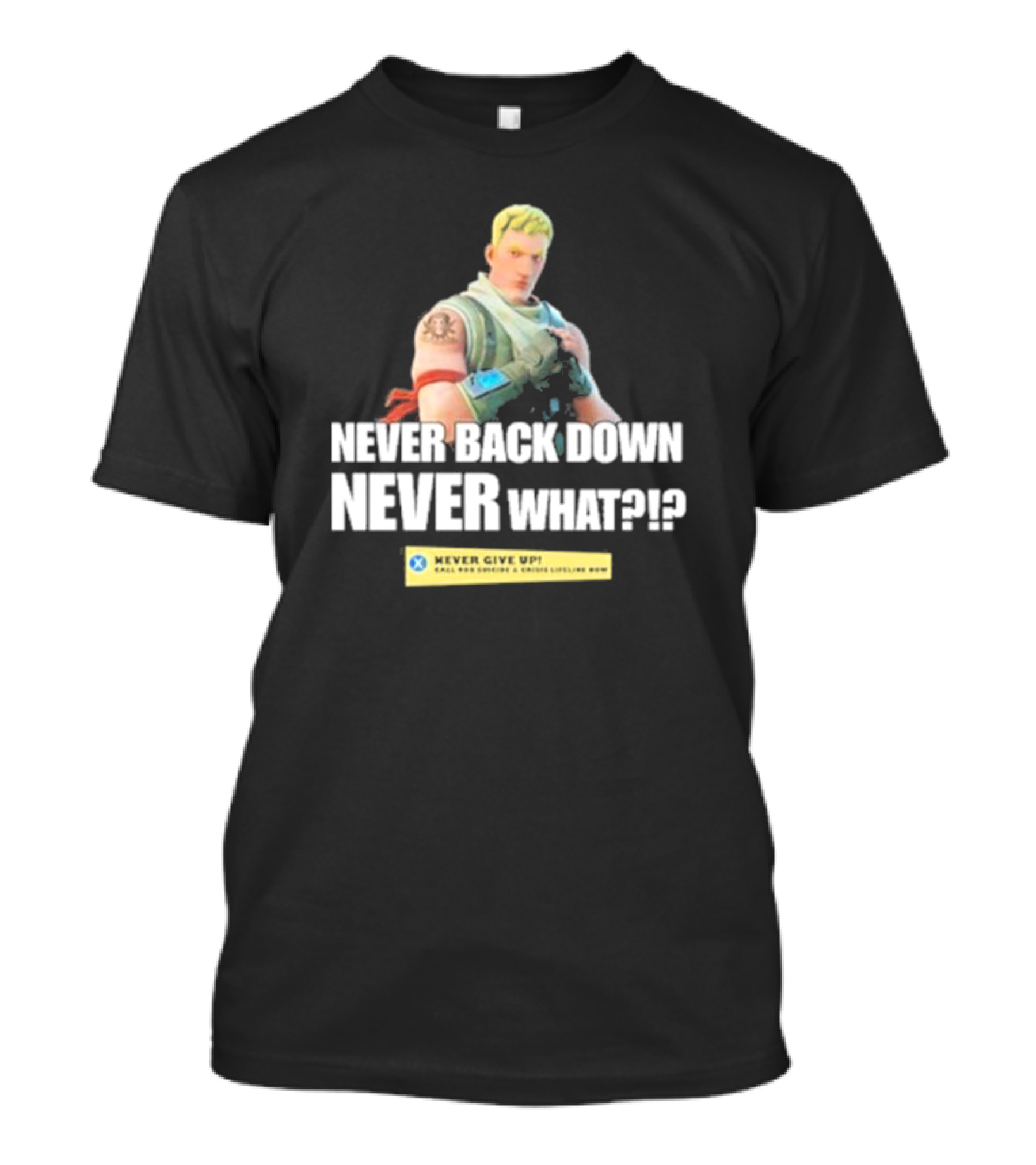 The Never Back Down Never What?? Never Give Up T-shirt is designed for everyday wear and a consistent fit. Fabric is pre-shrunk ring-spun cotton with durable stitching. See the size chart below for exact measurements.