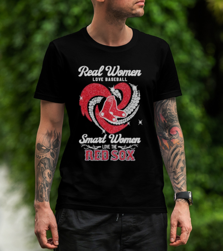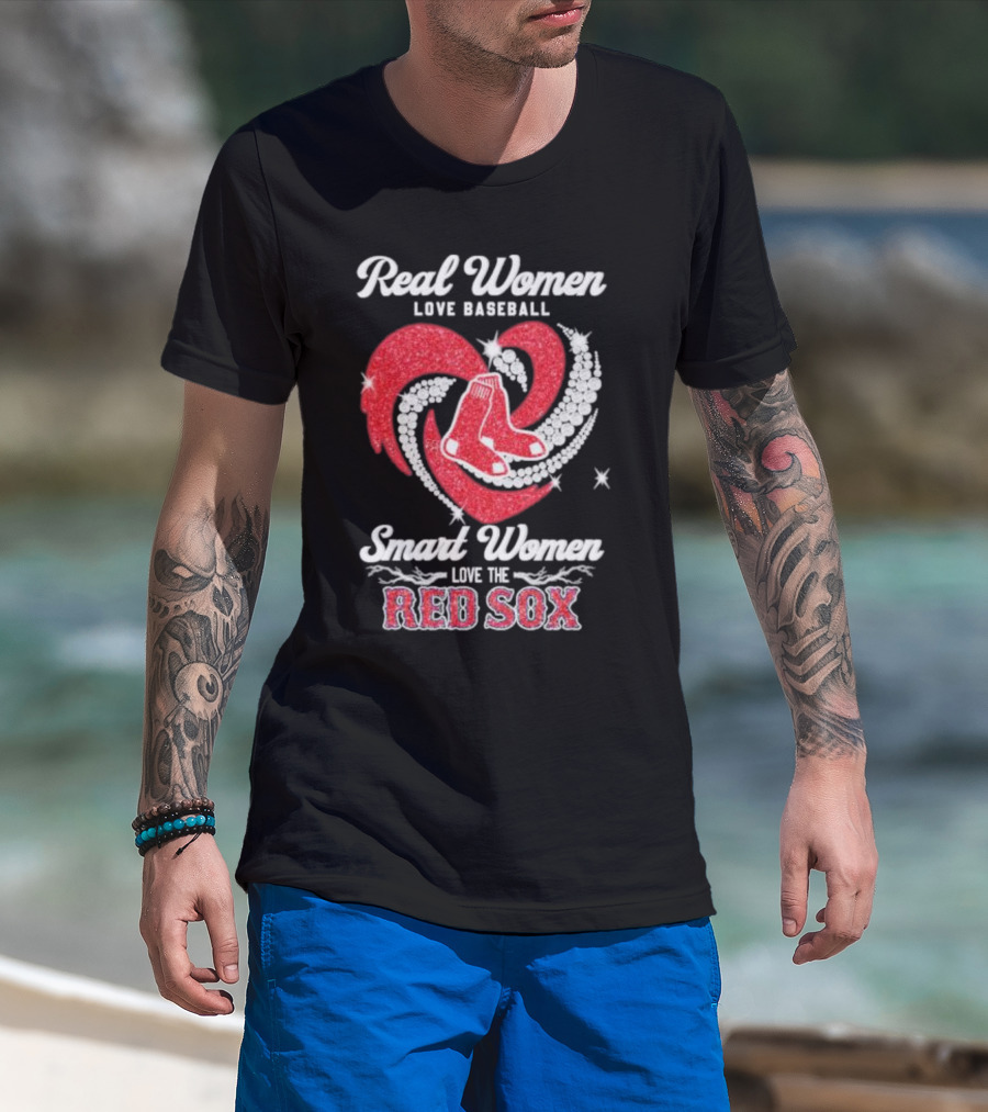 Real Women Love Baseball Smart Women Love The Red Sox Heart T-Shirt