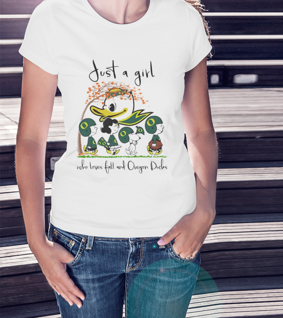 Just A Girl Who Loves Fall And Oregon Ducks Peanuts Characters T-Shirt