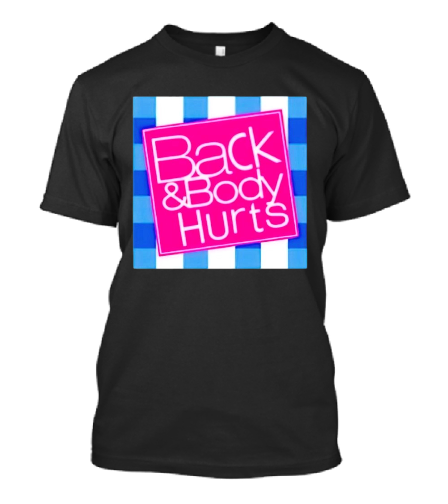 The Back and Body Hurts Pink Square Blue Checkered T-shirt is designed for everyday wear and a consistent fit. Fabric is pre-shrunk ring-spun cotton with durable stitching. See the size chart below for exact measurements.