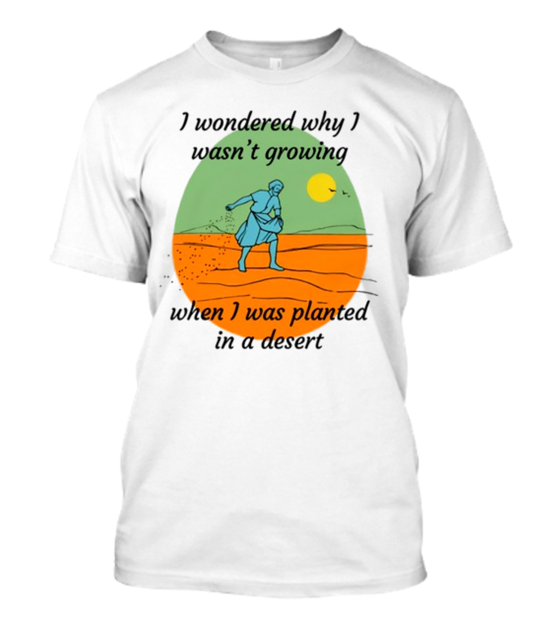 The I Wondered Why I Wasn't Growing When I Was Planted In A Desert Vintage Desert Scene And Sun T-shirt is designed for everyday wear and a consistent fit. Fabric is pre-shrunk ring-spun cotton with durable stitching. See the size chart below for exact measurements.