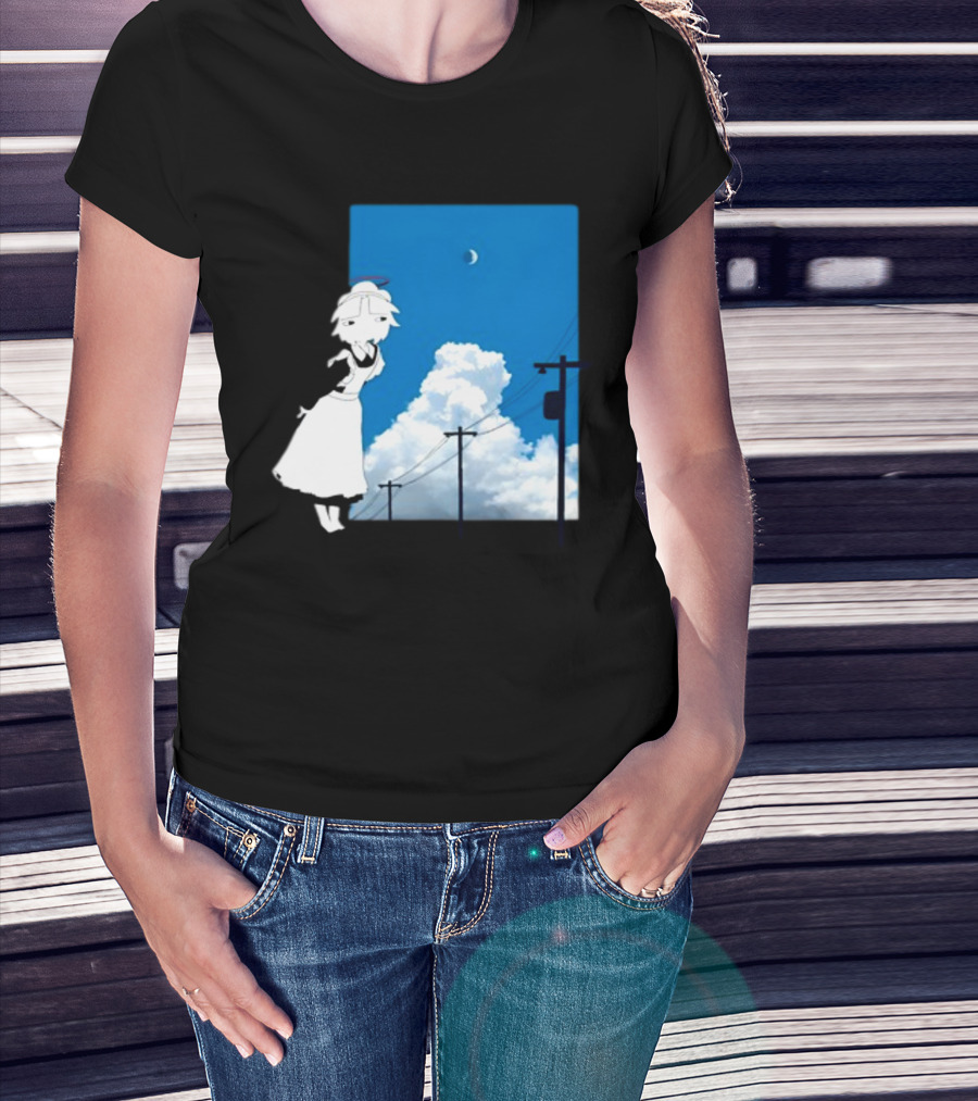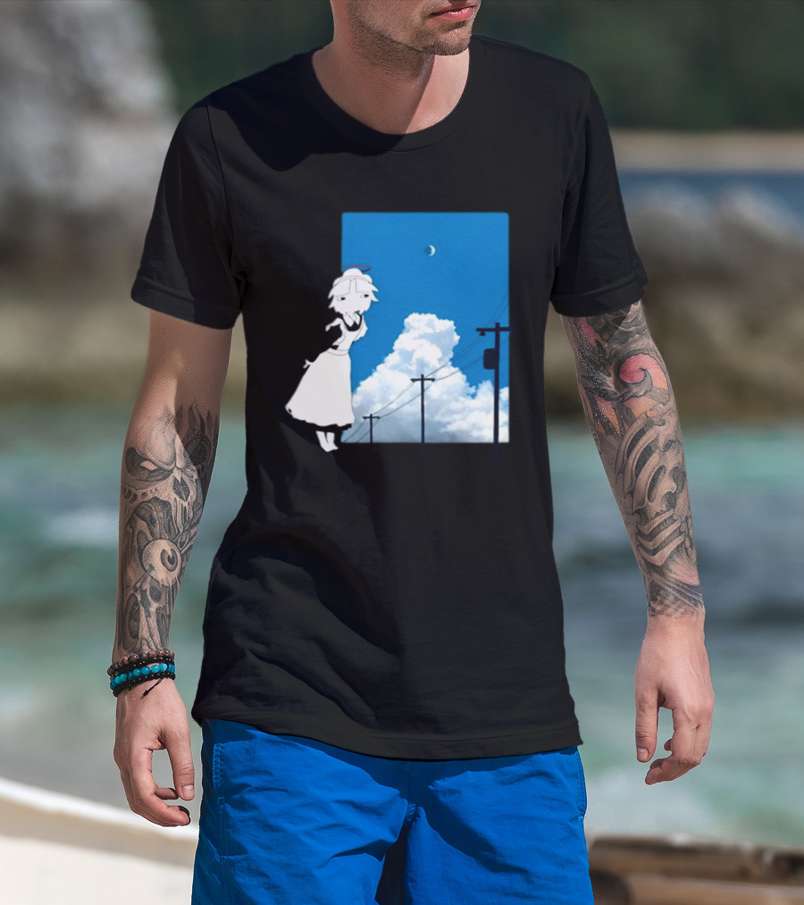 Electric Maid Under Cloudy Sky And Moon With Power Lines T-Shirt
