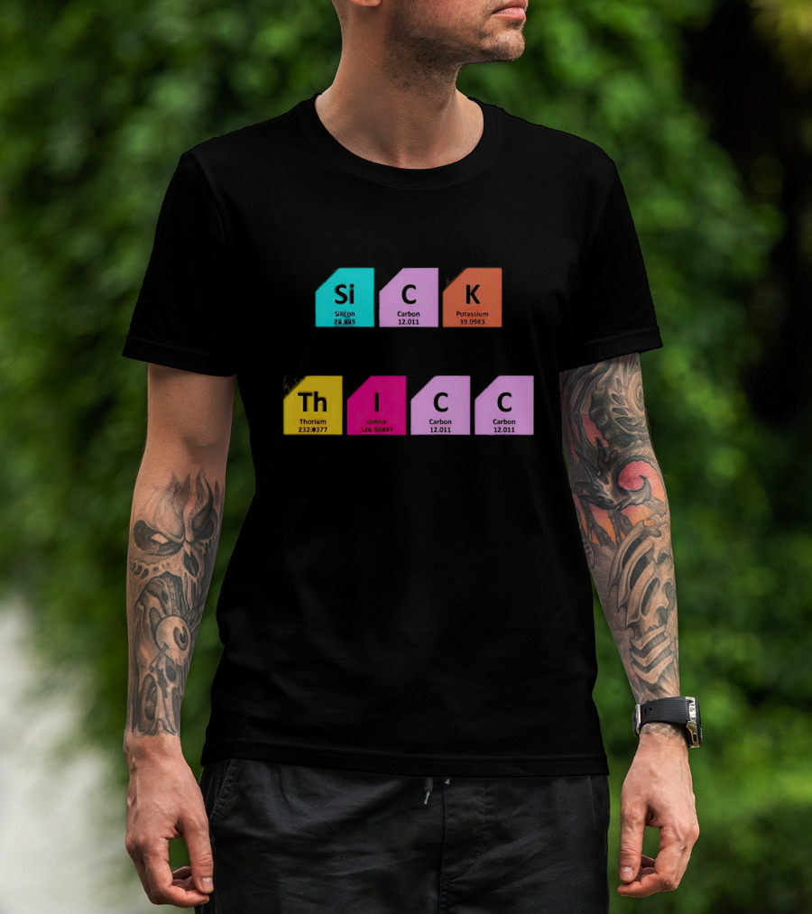 The Mentally SiCK Physically ThICC Silicon Carbon Potassium Thorium Iodine Carbon Carbon T-shirt is designed for everyday wear and a consistent fit. Fabric is pre-shrunk ring-spun cotton with durable stitching. See the size chart below for exact measurements.