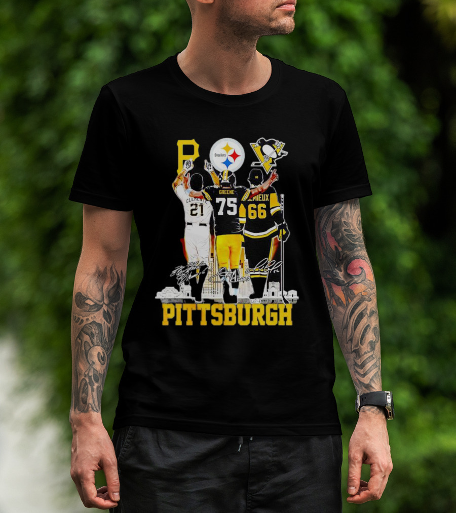 Pittsburgh Steelers Penguins Pirates Clemente Greene Lemieux Signatures T-Shirt