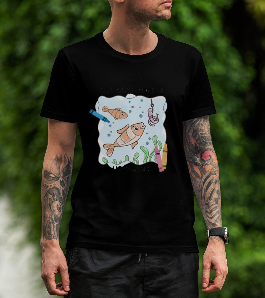 BUSINESS MAJOR HOMEWORK FISH CRAYONS HOOK AND WORM SCENE T-Shirt