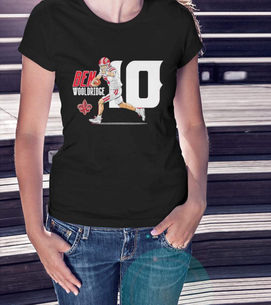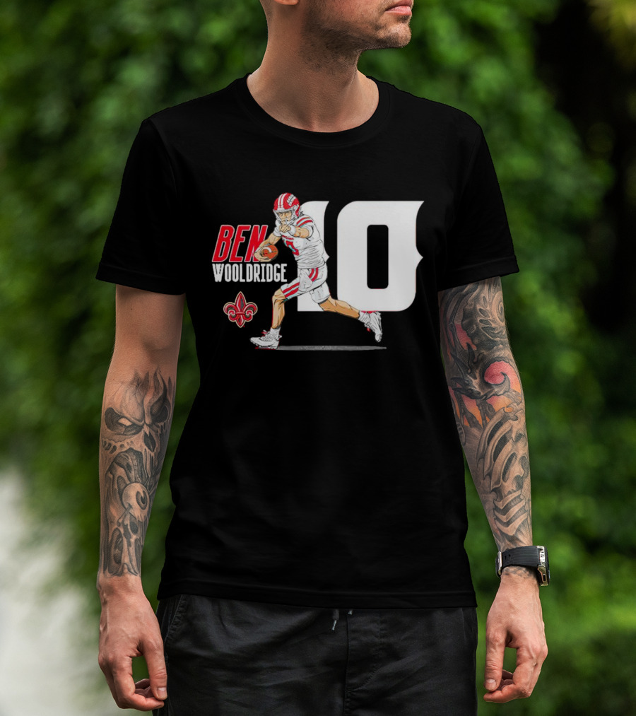 Ben Wooldridge Louisiana Ragin' Cajuns Number 10 Football Fleur-de-Lis Caricature T-Shirt