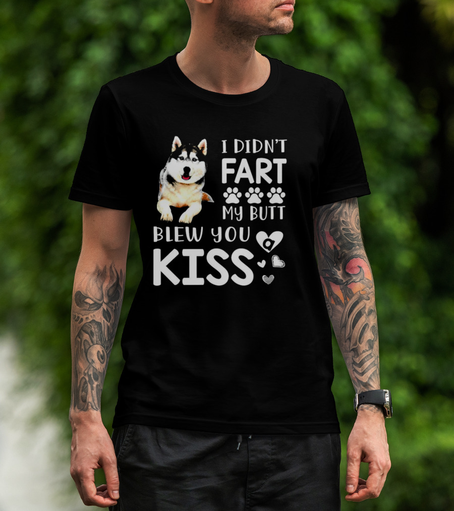 I Didn't Fart My Butt Blew You Kiss Husky Paw Prints Heart Icons T-Shirt