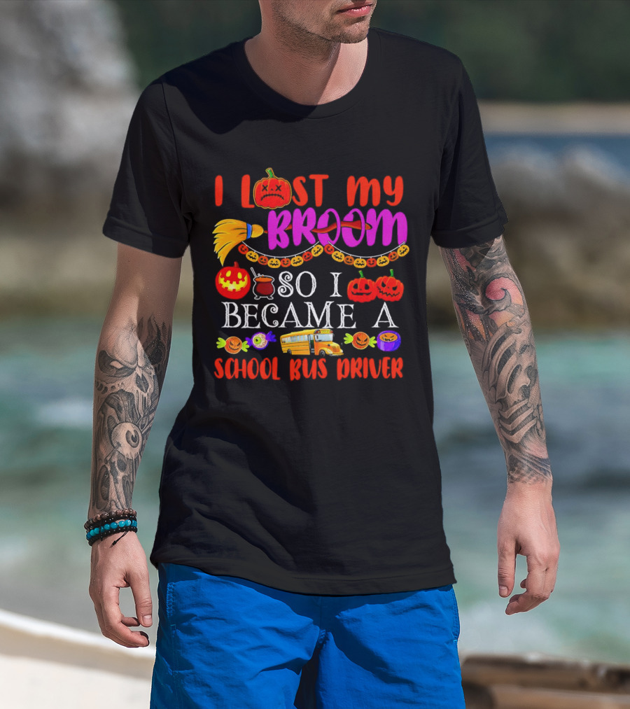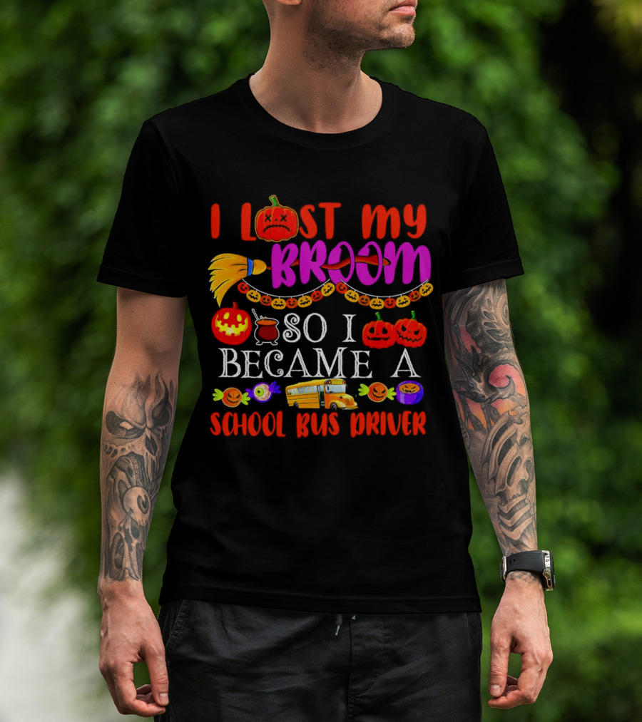 I Lost My Broom So I Became A School Bus Driver Halloween Pumpkins And School Bus T-Shirt