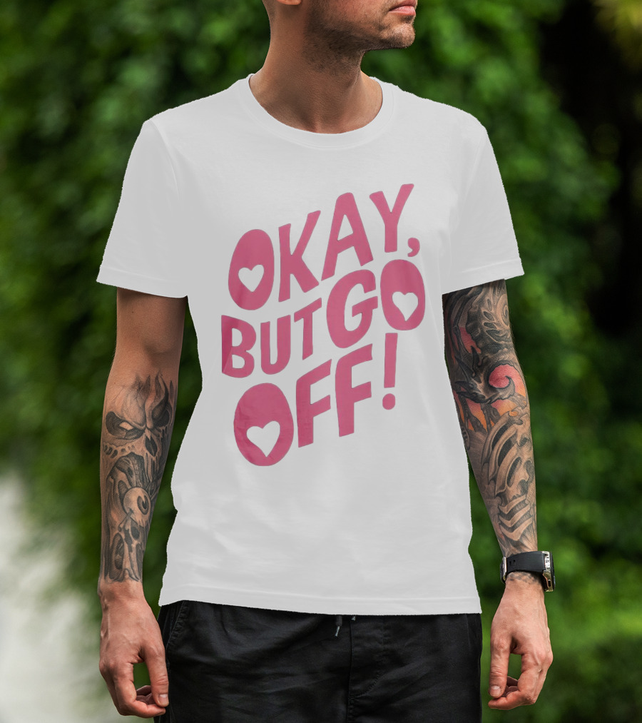 Okay But Go Off Bold Pink Heart Accents T-Shirt