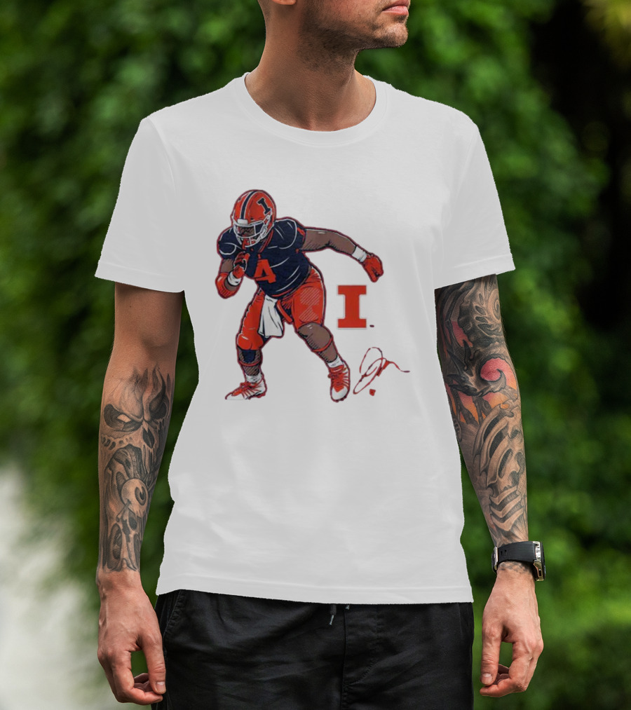 Illinois Football Jerzhan Newton Superstar Pose With Signature T-Shirt