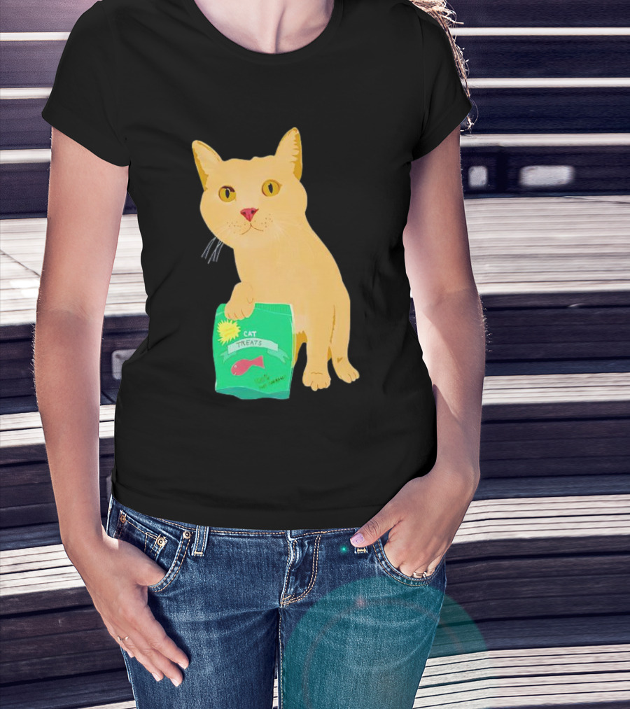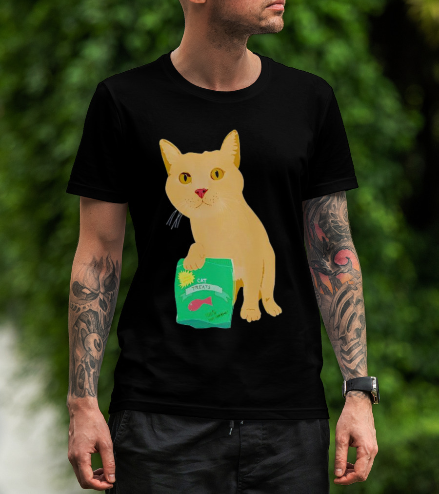 Cat Treats 100% Not Garbage Green Pack With Yellow Cat T-Shirt