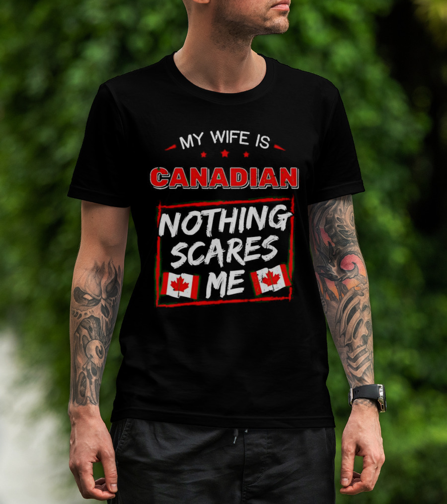 My Wife Is Canadian Nothing Scares Me Canadian Flags T-Shirt