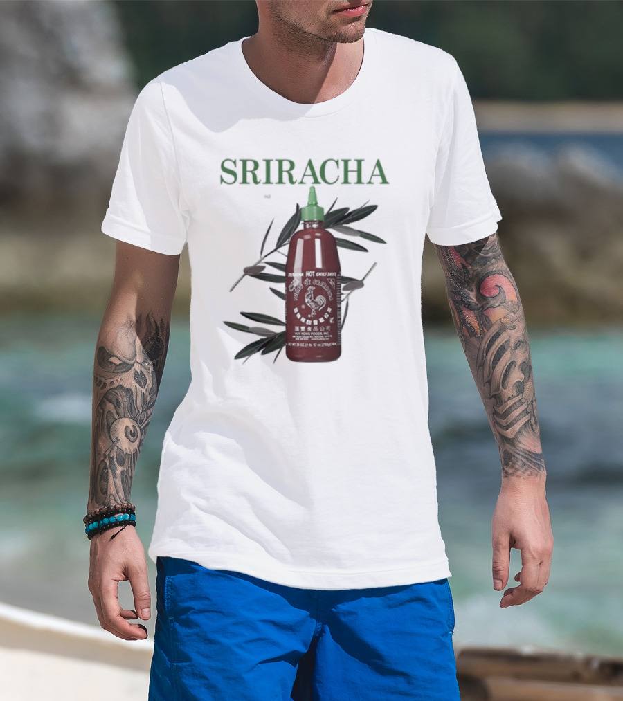 Sriracha You Can Pretty Much Put It On Everything Middleclassfancy Hot Chili Sauce Bottle T-Shirt