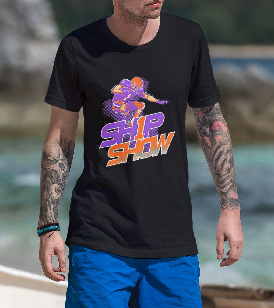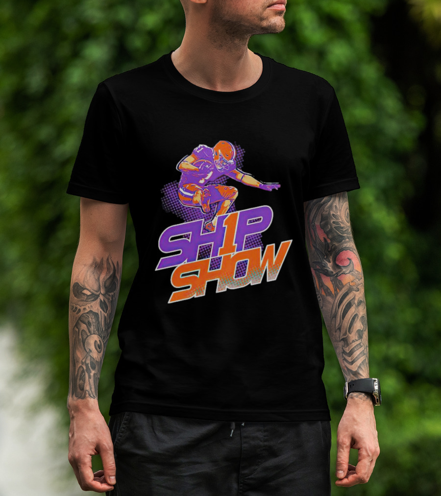 Clemson Tigers Ship Show Football Player In Orange And Purple T-Shirt