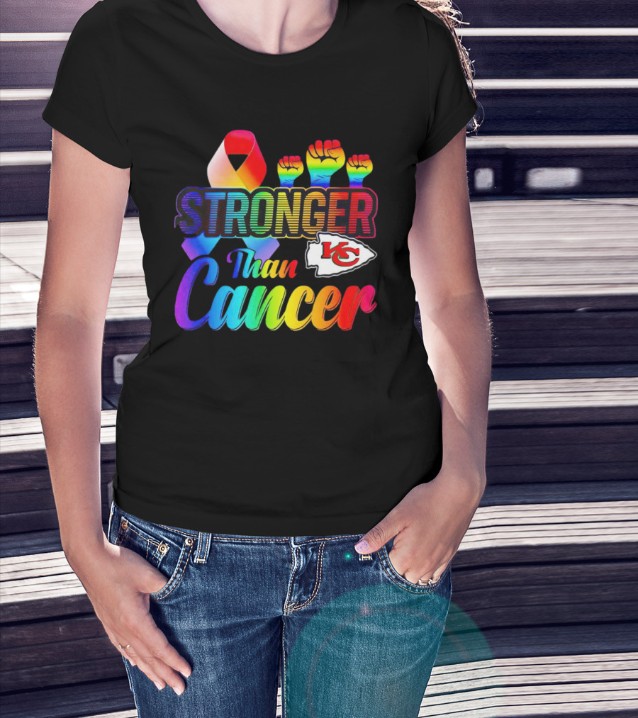 Kansas City Chiefs Stronger Than Cancer Rainbow Ribbon Fists T-Shirt