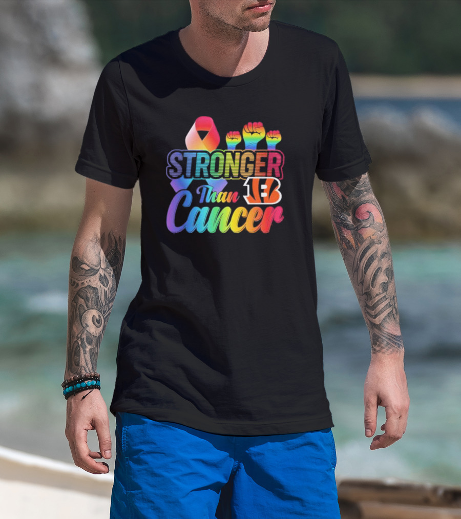 Stronger Than Cancer Cincinnati Bengals NFL Rainbow Ribbon And Fists T-Shirt