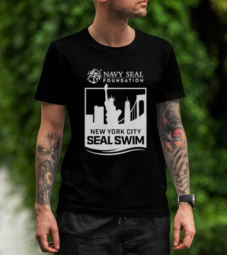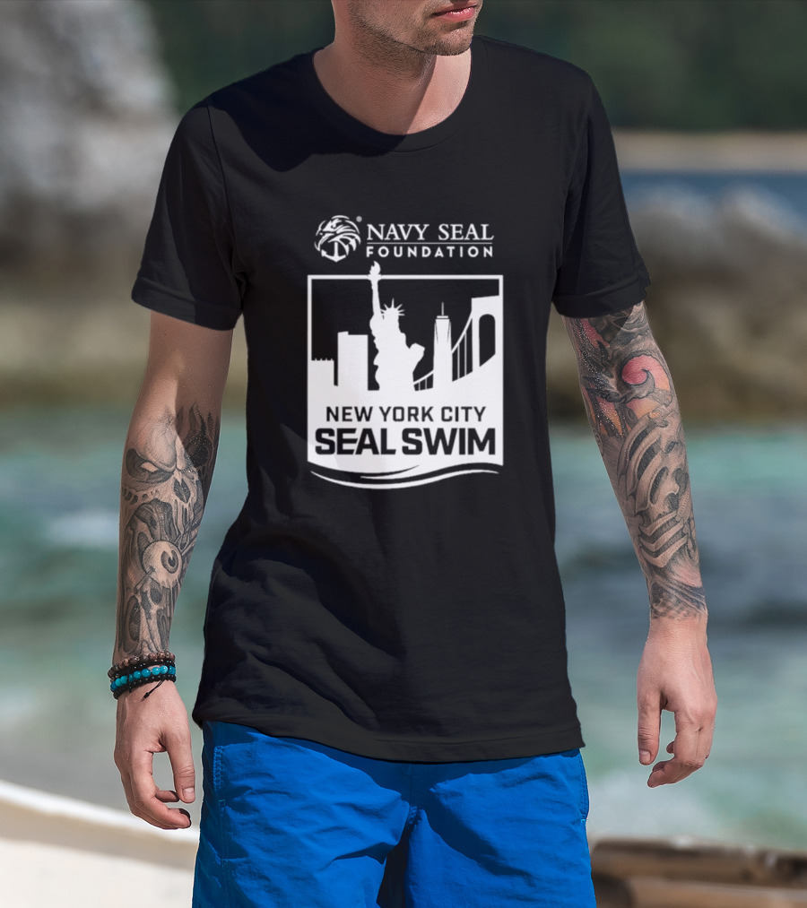 Navy Seal Foundation New York City Seal Swim Statue Liberty Skyline T-Shirt