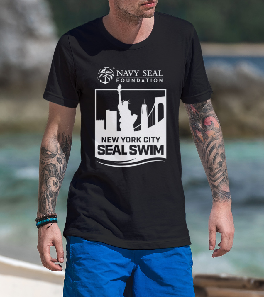 Navy Seal Foundation New York City Seal Swim Statue Of Liberty Bridge Skyline T-Shirt