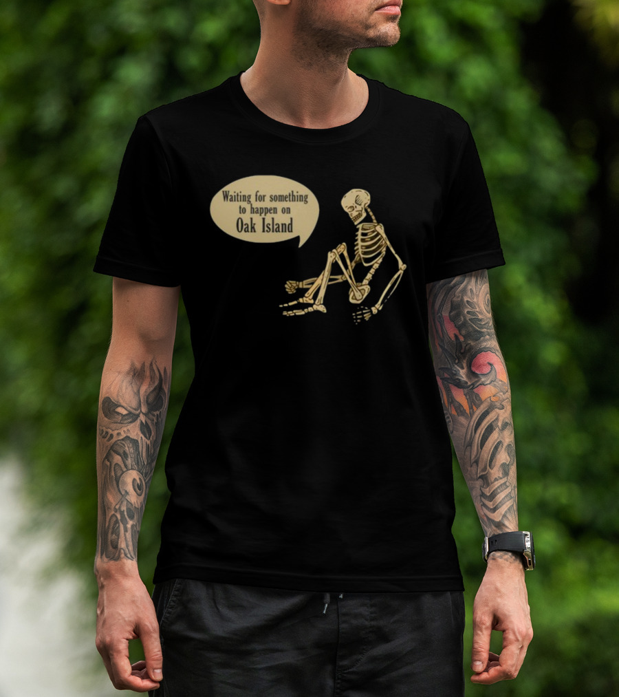 Waiting For Something To Happen On Oak Island With Skeleton Sitting In Anticipation T-Shirt