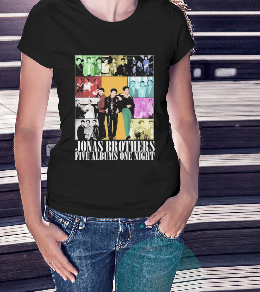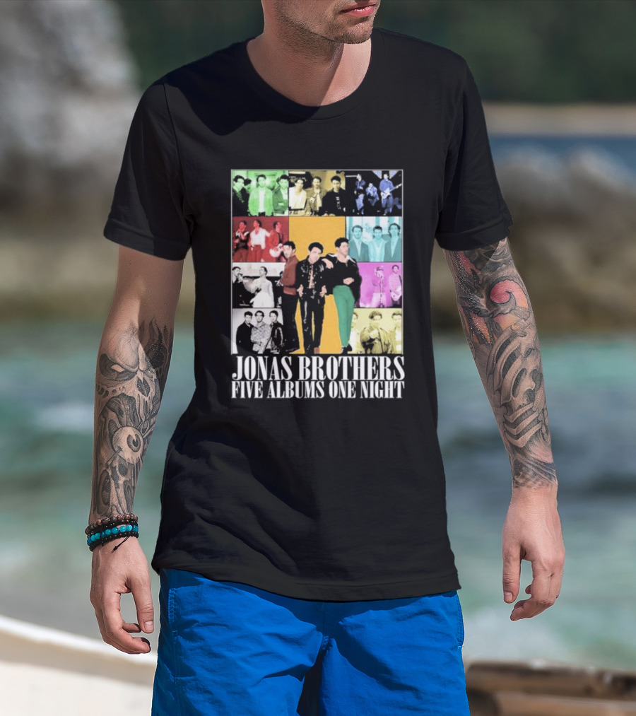 Jonas Brothers Five Albums One Night Multicolor Photo Collage T-Shirt