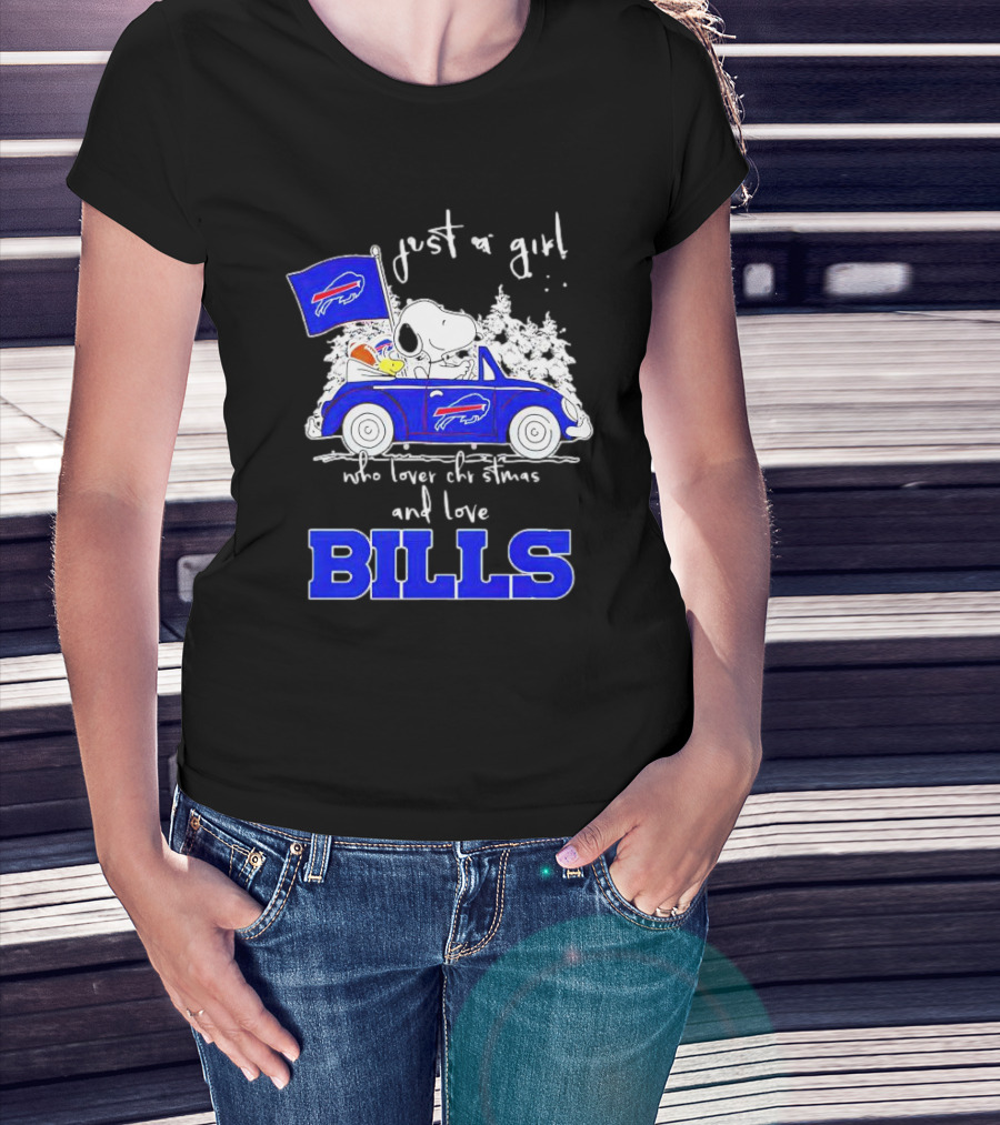 Just A Girl Who Loves Christmas And Love Bills Peanuts Characters Snoopy Buffalo Bills Car T-Shirt
