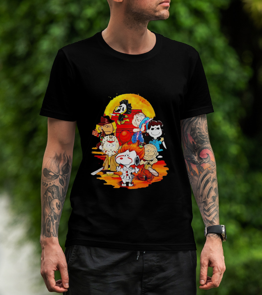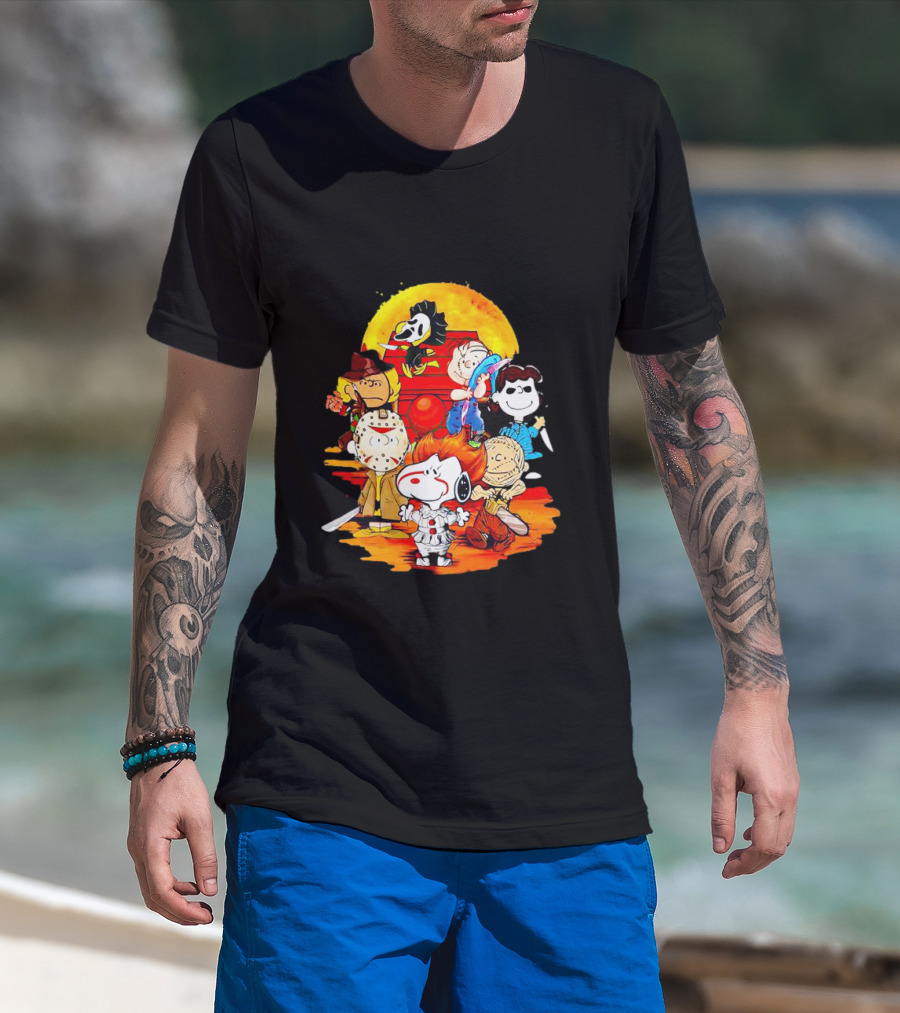 Peanuts Characters Halloween Horror Mashup With Iconic Scary Movie Villains T-Shirt