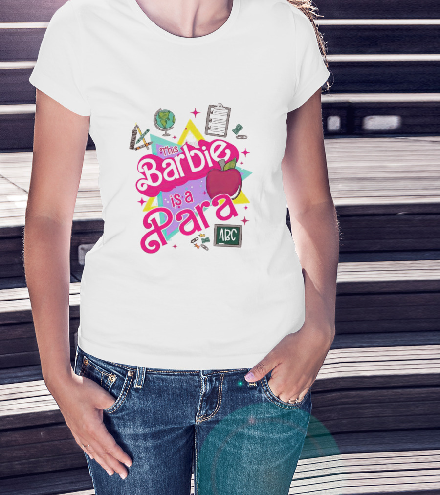 This Barbie Is A Para Apple Stars Globe Clipboard ABC Educational Elements T-Shirt