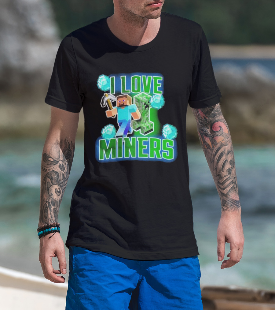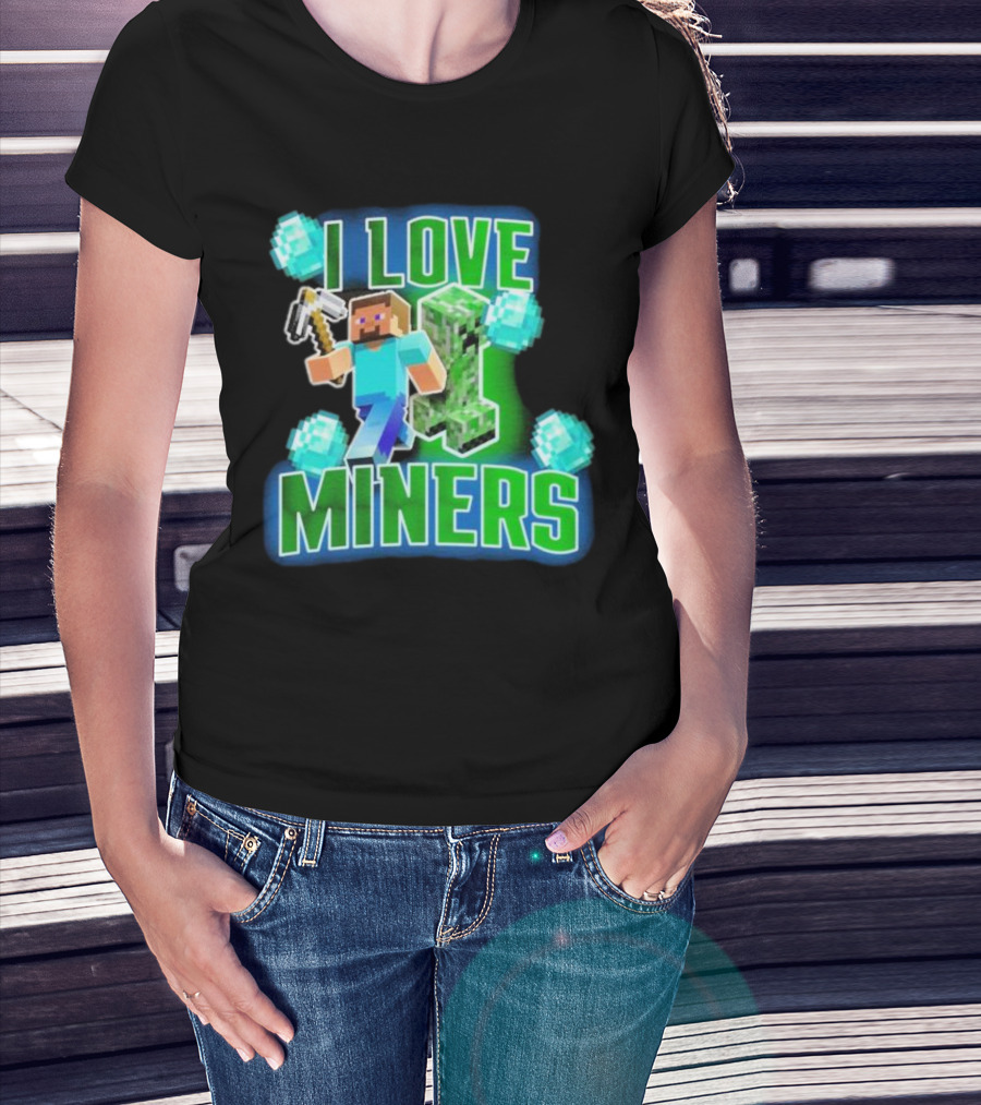I Love Miners Minecraft Creeper And Steve With Pickaxe And Diamonds T-Shirt