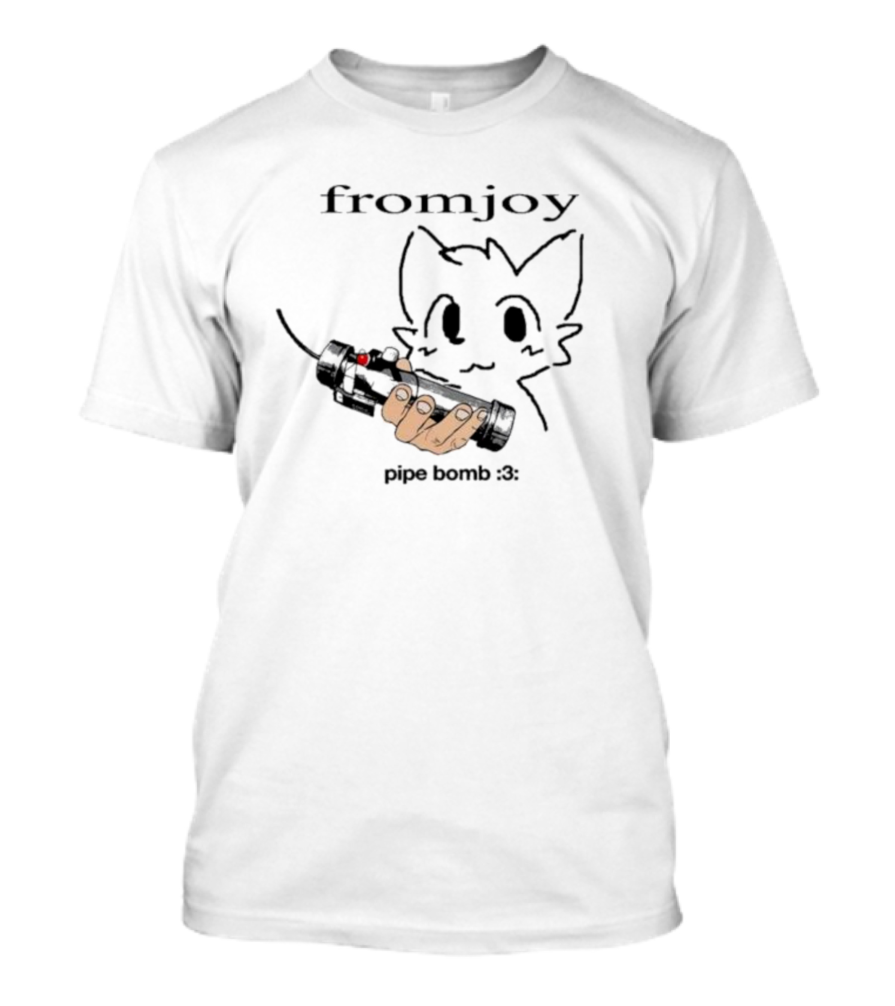 The fromjoy Pipe Bomb Cat Drawing :3 T-shirt is designed for everyday wear and a consistent fit. Fabric is pre-shrunk ring-spun cotton with durable stitching. See the size chart below for exact measurements.