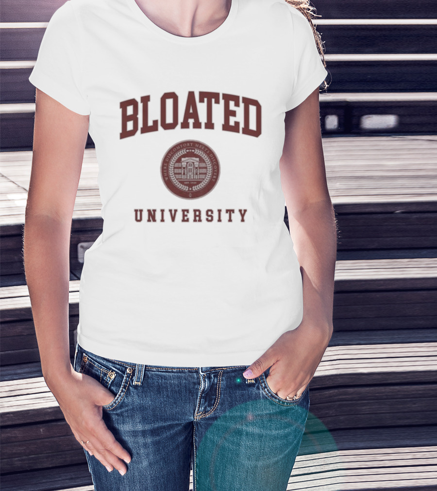 The Bloated University Seal T-shirt is designed for everyday wear and a consistent fit. Fabric is pre-shrunk ring-spun cotton with durable stitching. See the size chart below for exact measurements.