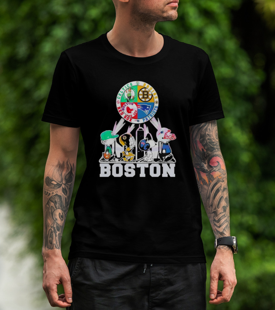 Boston Celtics Bruins Red Sox Patriots Peanuts Characters T-Shirt