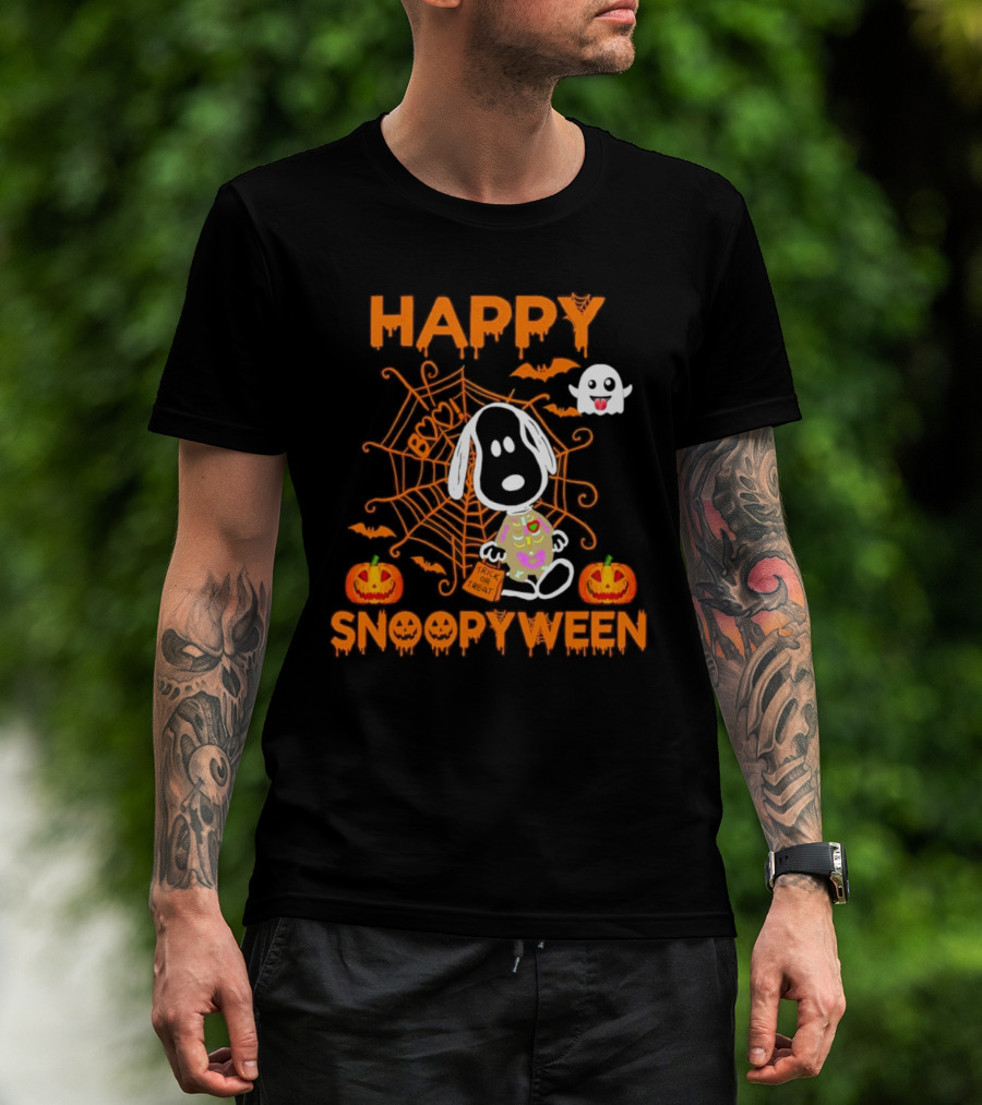 Happy Snoopyween Trick Or Treat Spooky Ghosts Pumpkins And Spider Webs T-Shirt