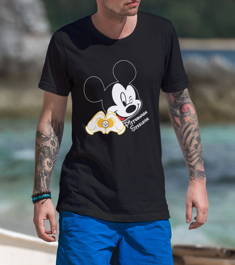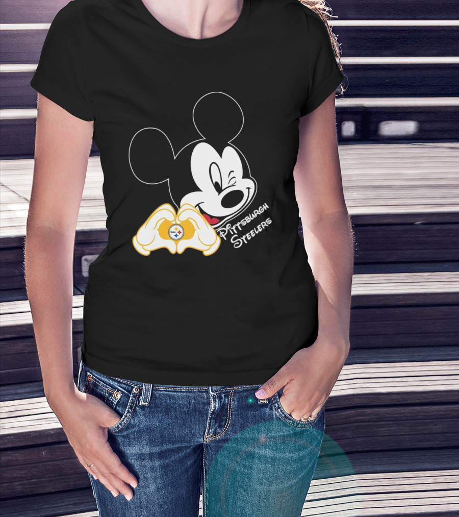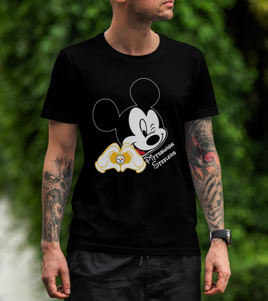 Mickey Mouse Heart Hands Pittsburgh Steelers T-Shirt