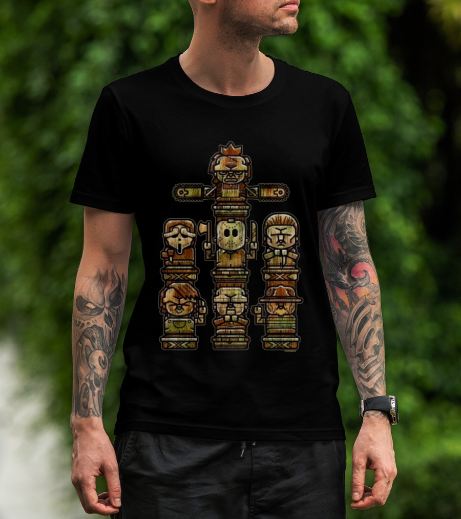 The Horror Gods Totem Icons T-shirt is designed for everyday wear and a consistent fit. Fabric is pre-shrunk ring-spun cotton with durable stitching. See the size chart below for exact measurements.