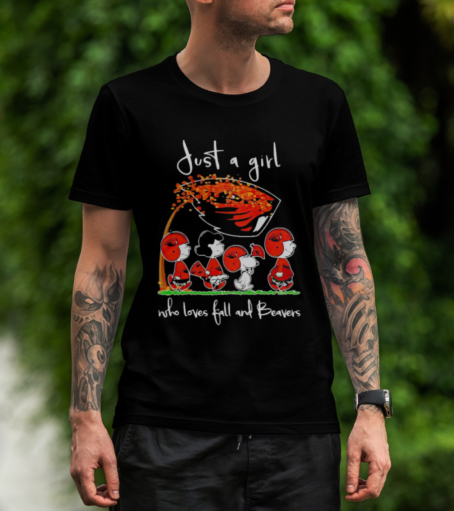 Just A Girl Who Loves Fall And Beavers Peanuts Characters In Football Gear T-Shirt