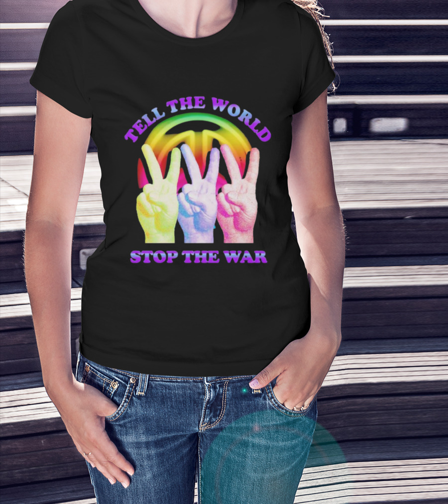 Tell The World Stop The War Peace Sign And Colorful Victory Hands T-Shirt