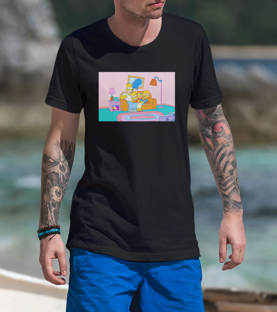 The Simpsons Family Sitting On Couch Retro Style Scene T-Shirt
