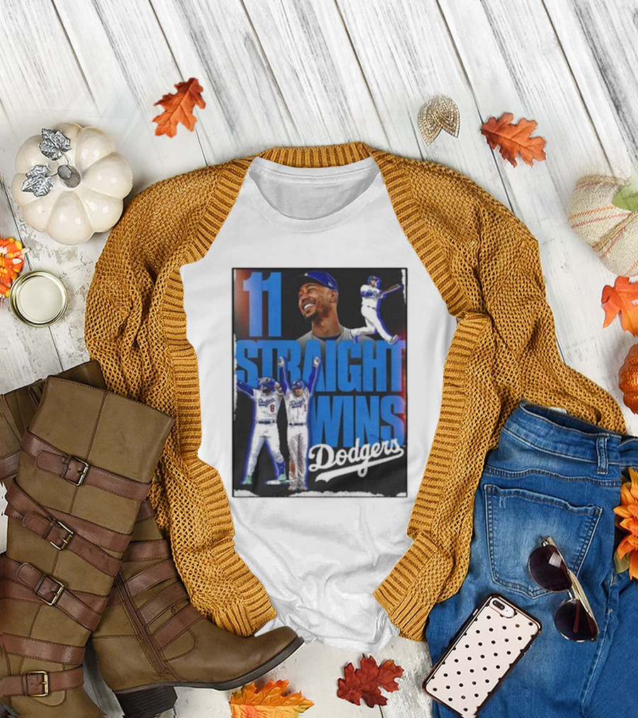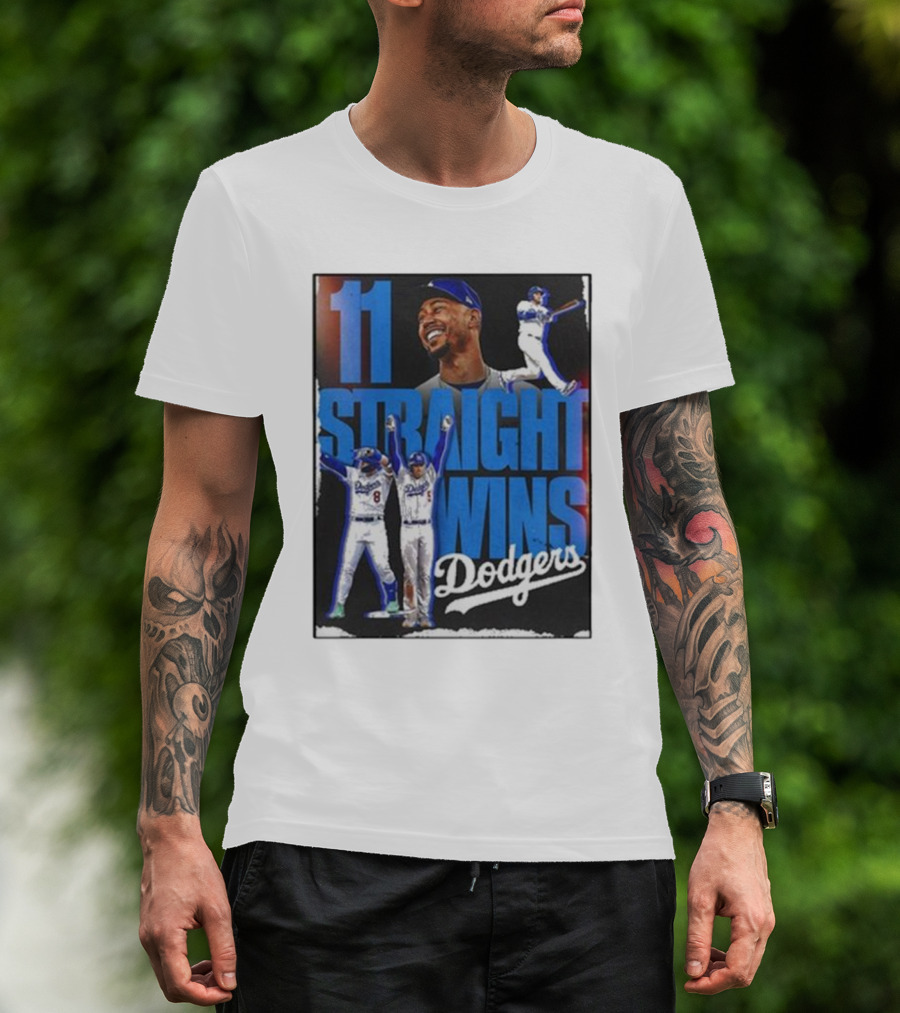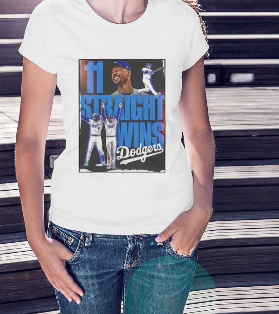 The 11 Straight Wins Dodgers T-shirt is designed for everyday wear and a consistent fit. Fabric is pre-shrunk ring-spun cotton with durable stitching. See the size chart below for exact measurements.