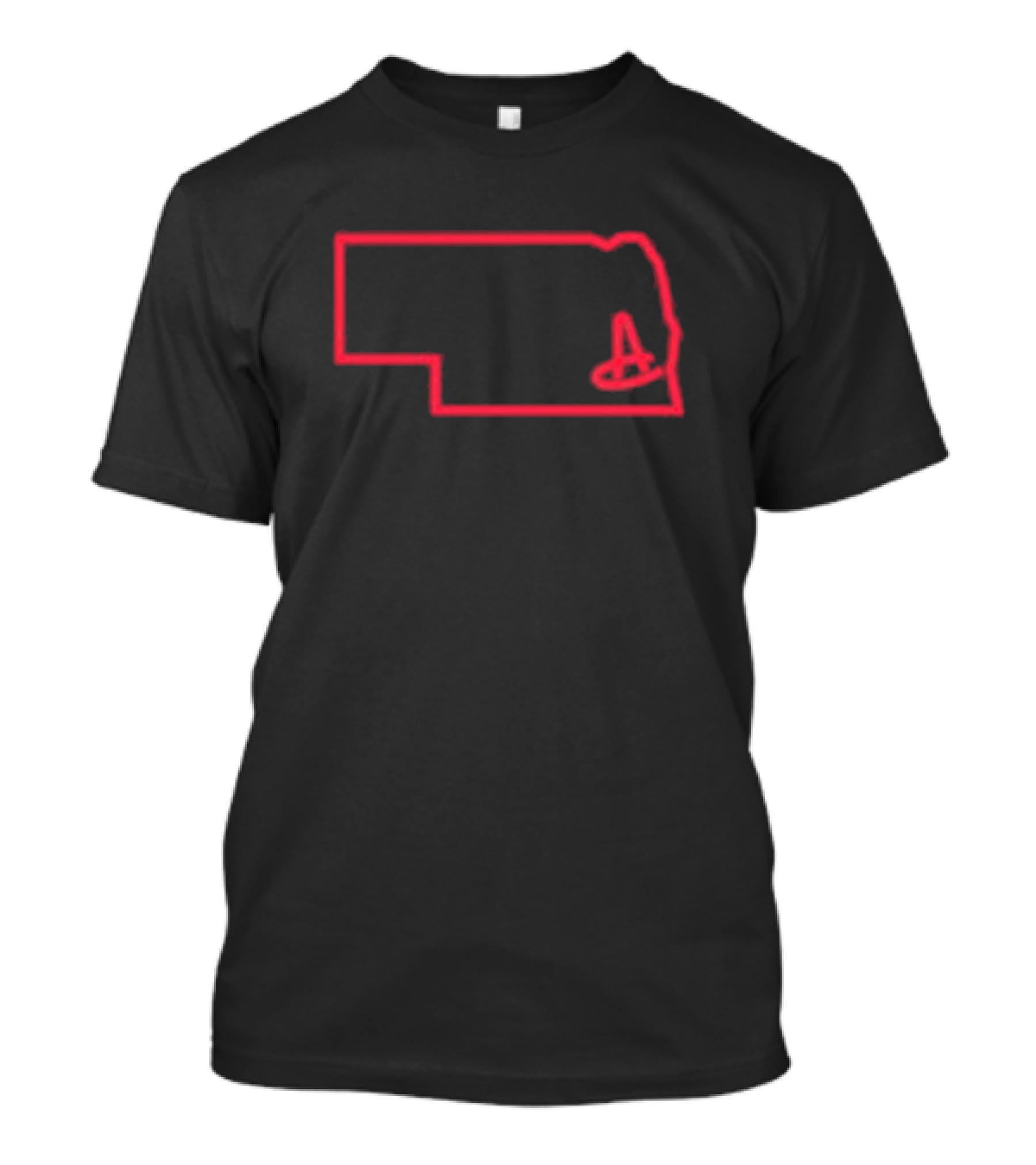 Nebraska Amigos Red Outline State Shape With A T-Shirt