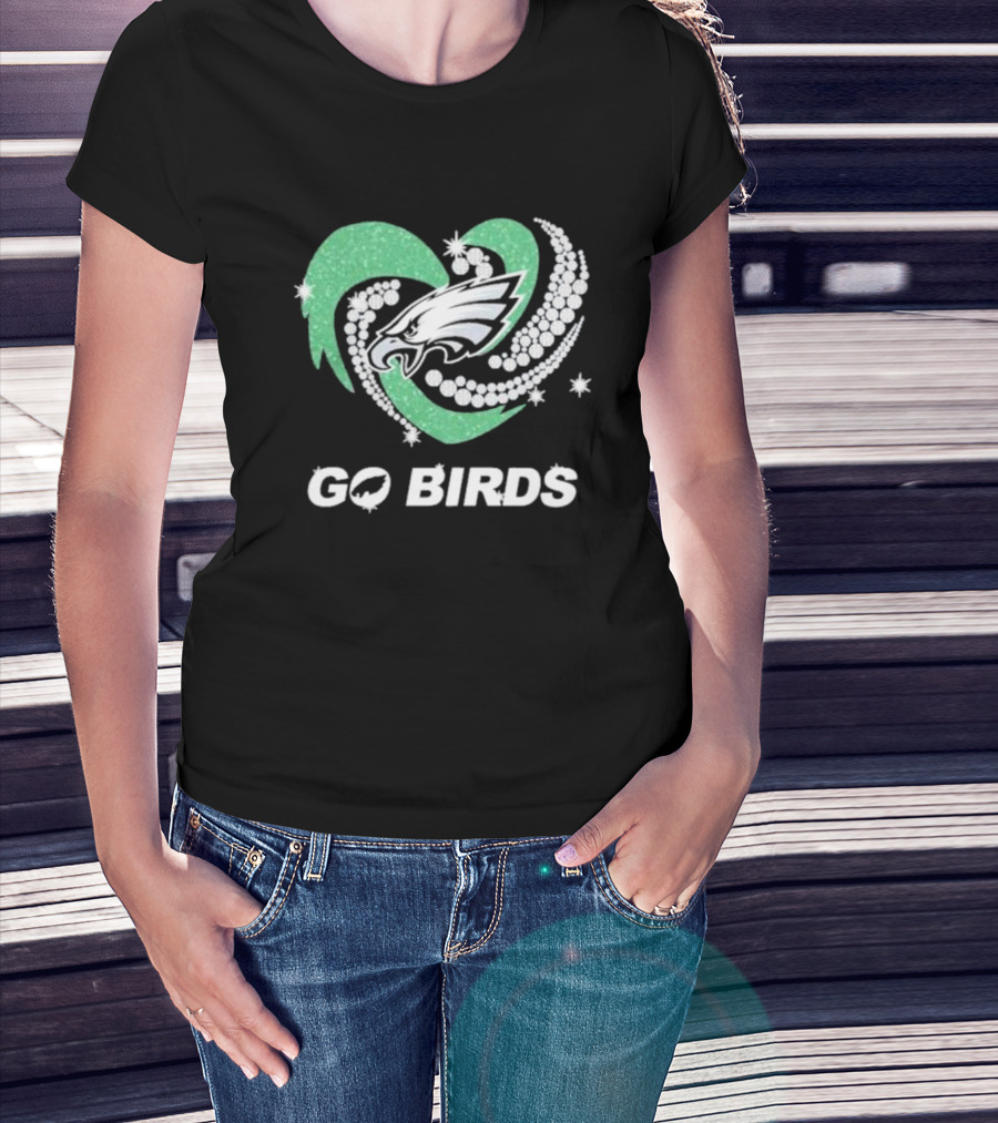 Philadelphia Eagles Go Birds Sparkling Heart T-Shirt