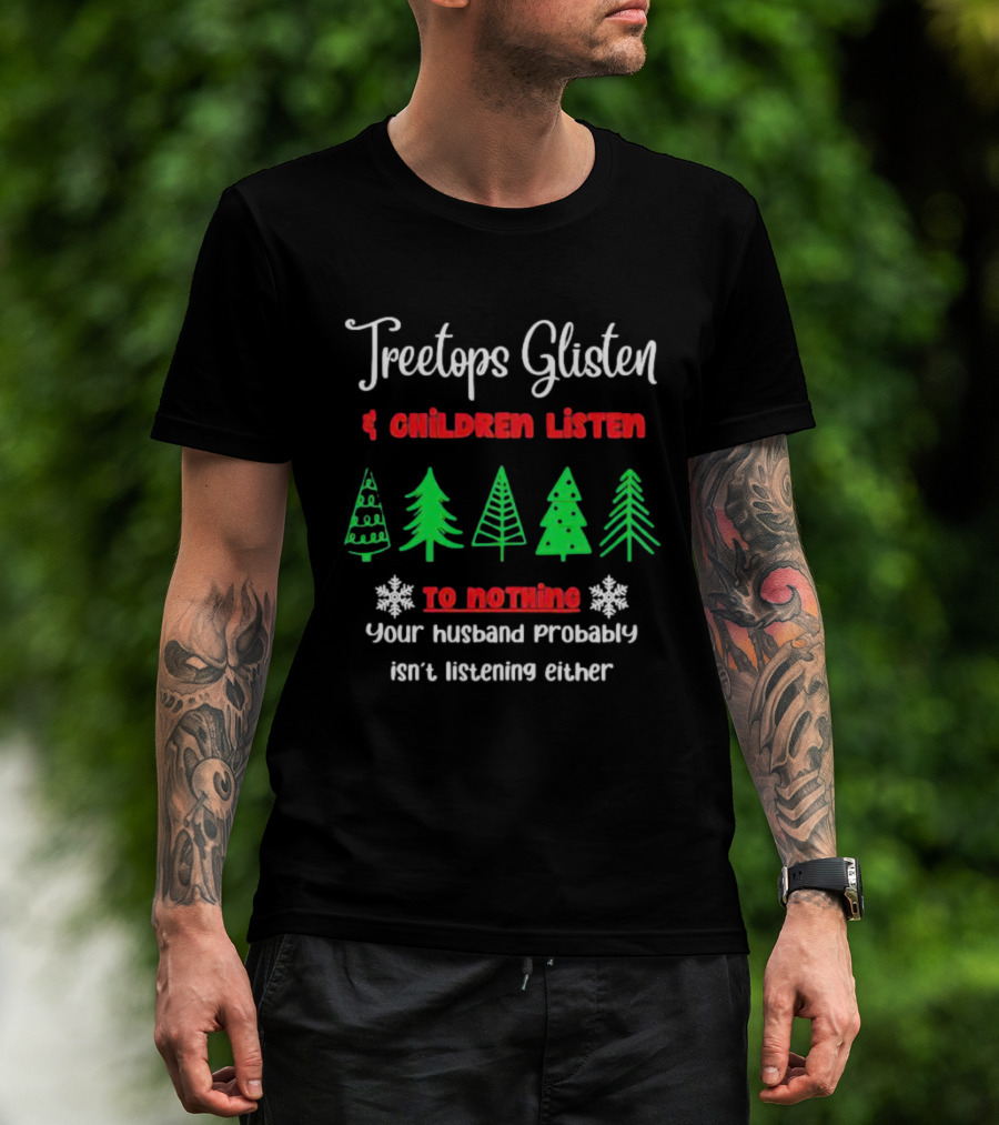 Treetops Glisten Children Listen To Nothing Your Husband Probably Isn't Listening Either T-Shirt