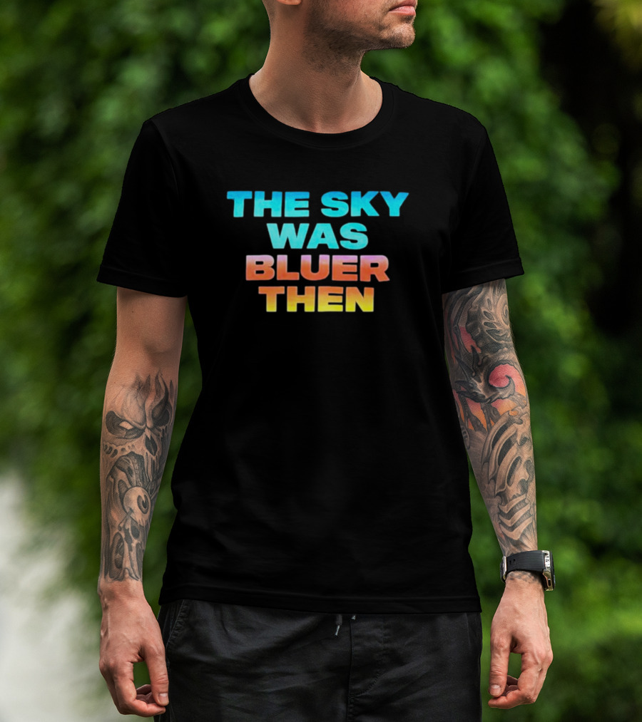 The The Sky Was Bluer Then T-shirt is designed for everyday wear and a consistent fit. Fabric is pre-shrunk ring-spun cotton with durable stitching. See the size chart below for exact measurements.