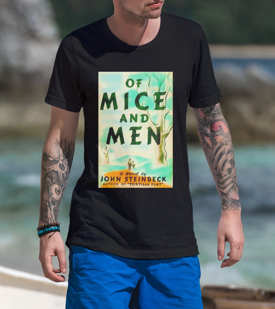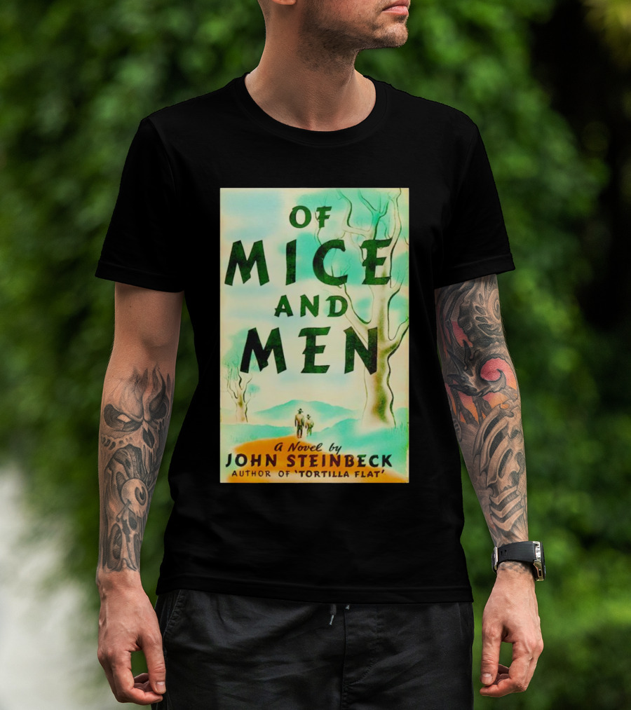 The Of Mice and Men A Novel by John Steinbeck Author of Tortilla Flat T-shirt is designed for everyday wear and a consistent fit. Fabric is pre-shrunk ring-spun cotton with durable stitching. See the size chart below for exact measurements.